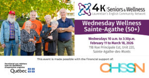 For just $10/year, you can join 4Korners, enjoy free programs all year, and help us fight for better health, wellness, and social services for the English-speaking community in the Laurentians.