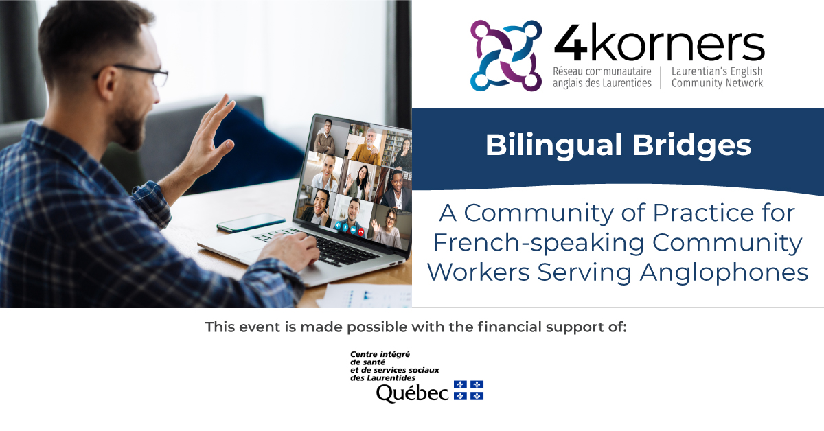 As part of the Fonds régional de promotion de l’accessibilité à des services de santé et des services sociaux en langue anglaise (FRASLA) 2025–2026, 4Korners will coordinate a series of online lunch-and-learn sessions designed to strengthen the capacity and confidence of French-speaking community workers to communicate in English.