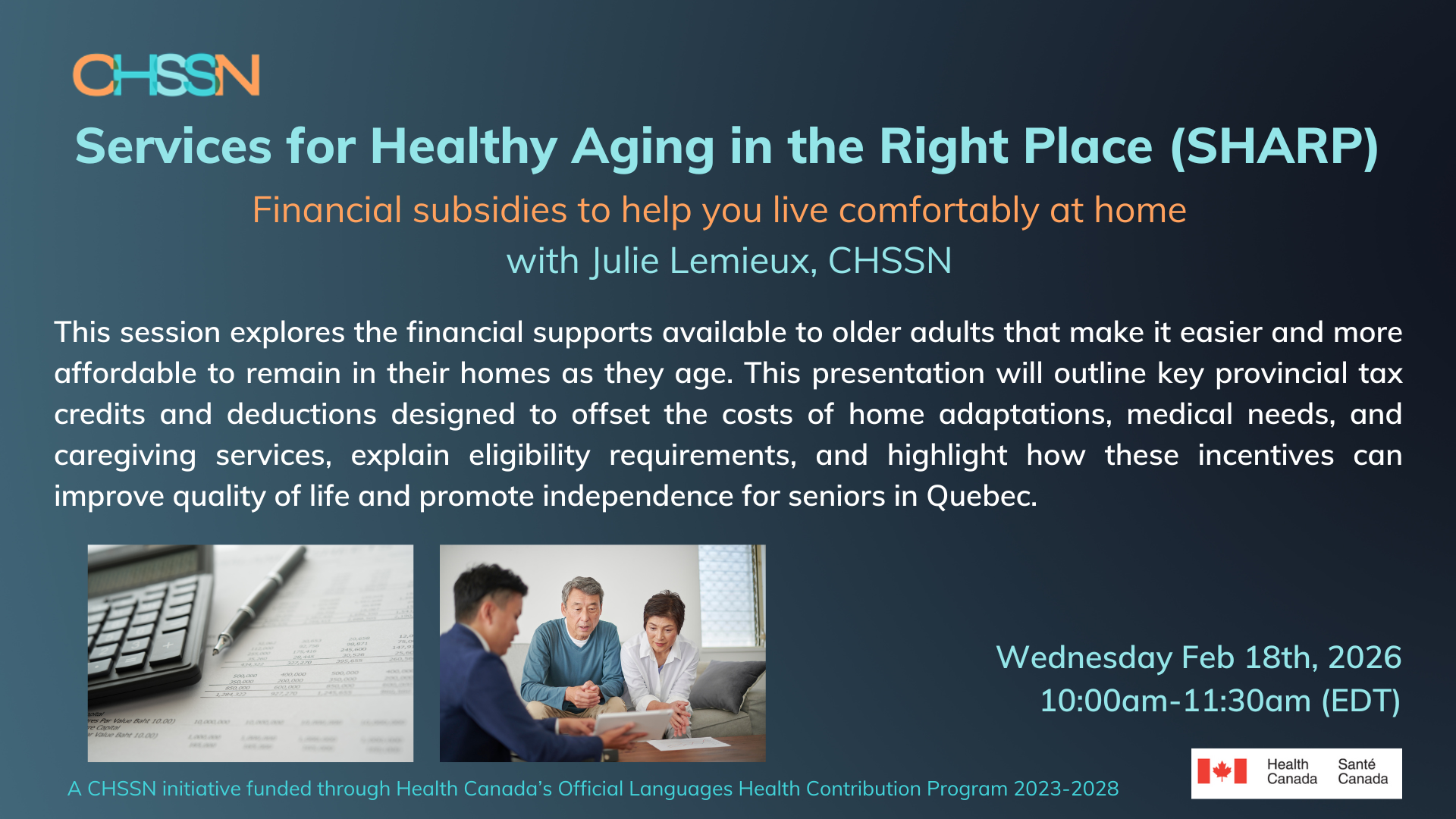 Financial Subsidies to Help You Live Comfortably at Home – Presented by Julie Lemieux, Director of Finances, CHSSN