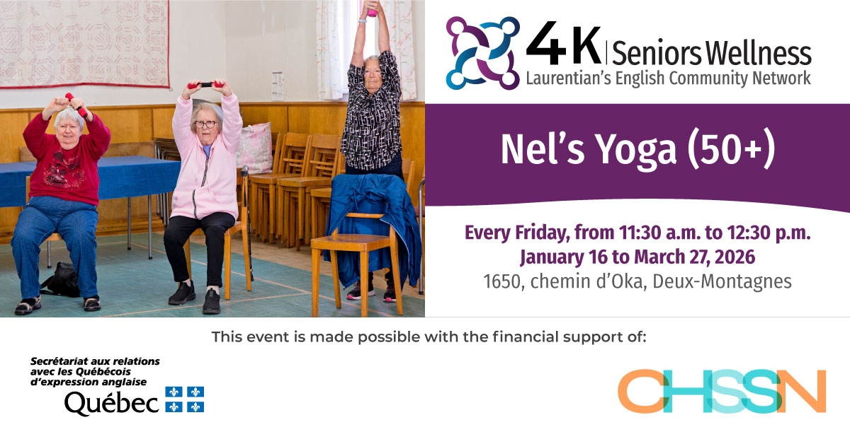 Due to strong community interest, a second Nel’s Yoga group is now open for seniors in Deux-Montagnes.