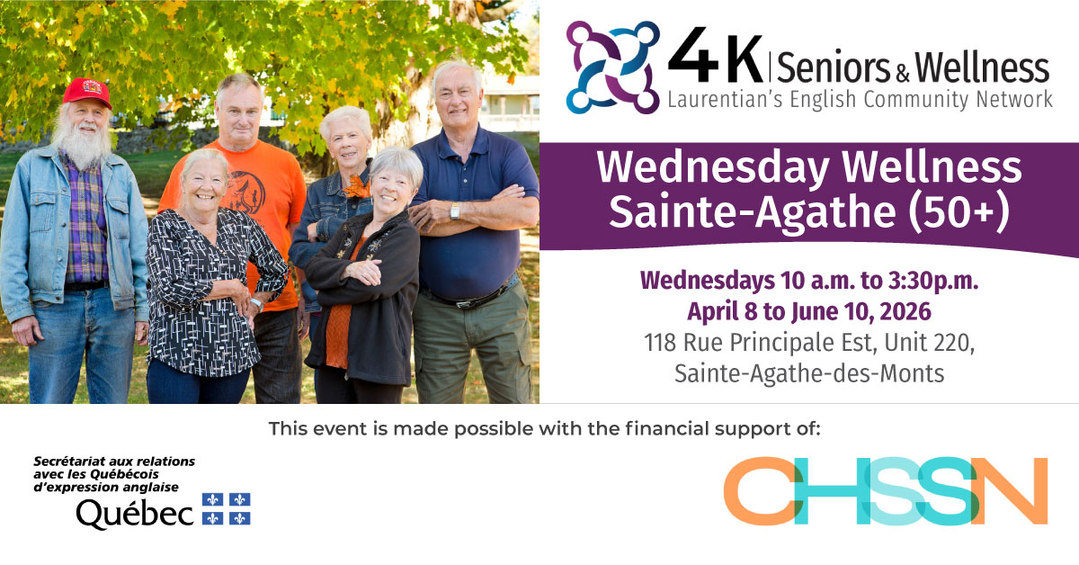 Join us for a vibrant program designed specifically for English-speaking seniors in the Laurentians! Our activities are designed to nurture your health and well-being throughout the year.