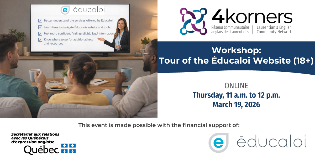 Knowing your rights and where to find trustworthy information matters. Join us for a guided online workshop that will help you explore the Éducaloi website, a trusted source of clear legal information in Quebec.