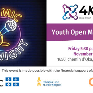 Are you that friend who always wants to do karaoke? Often find yourself singing in the shower? Why not try performing at our next 4K Youth Open Mic Night! Music, comedy, poetry, anything is welcome. Set up starts at 5:30 p.m., performances from 6 to 8 p.m. Come perform or just hang out and enjoy […]