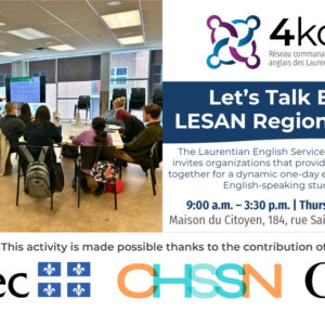 LESAN Regional Exchange The Laurentian English Services Advisory Network (LESAN) invites organizations that provide services in English to come together for a dynamic one-day event dedicated to supporting English-speaking students and parents. This regional exchange will focus on education and offer valuable opportunities for networking, learning, and collaboration to enhance services for the English-speaking community. […]